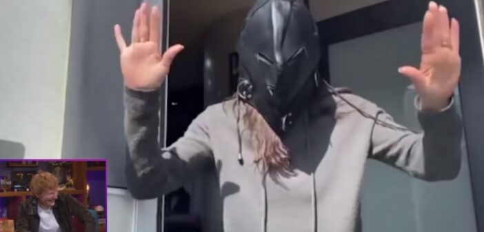 Corden, em seguida, exibiu um vídeo que Cox enviou a Sheeran em fevereiro passado, em celebração ao seu aniversário de 30 anos, onde usa uma das máscaras que encontrou. Veja, a partir dos 4 minutos e 15: