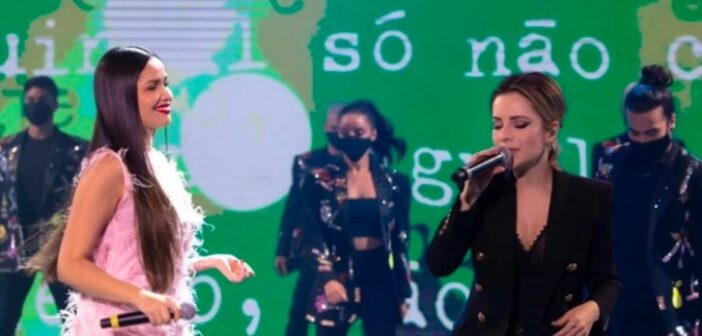 Foi quando Sandy apareceu no telão para conversar com a nova artista da música, propondo um dueto que se concretizou minutos depois no programa e que se tornou a primeira aparição da cantora após a pandemia da Covid-19.