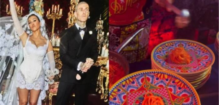 – Porção de comida servida no casamento de Travis Barker e Kourtney Kardashian viraliza nas redes